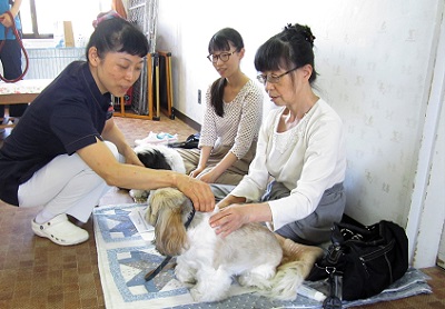 マッサージ教室の様子。向かって左側が廣瀬獣医師。