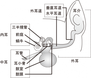 耳は音を聞くという機能のほかに、重力の向きや加速度、平衡感覚といった身体のバランスをとる機能があります。