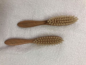 ブラシはスリッカーブラシだと肌を傷める可能性がありますので、ブラシの先が丸くなっていて、ブラシの毛が柔らかいシャンプーブラシ(画像の紫のブラシ)を使用するか、やわらかめの獣毛ブラシがお勧めです。上級者でスリッカーブラシを使用できる人は 先に丸く玉が付いたブラシを使用してください。