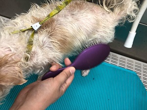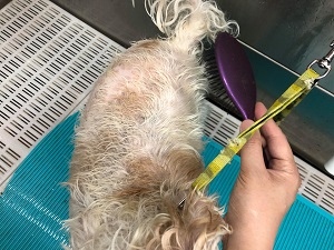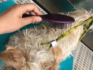 濡れている毛にブラシを入れて毛をパラパラにします。