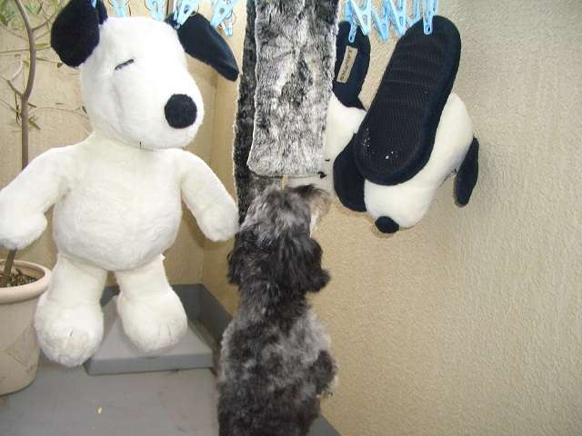 ましゅうも大好きなおもちゃの乾くのが待ちきれない様子。