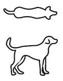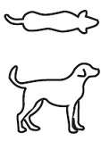 これをもとにして、ワンちゃんを上から、横から見てみましょう。