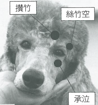 老化に伴う白内障、結膜炎、角膜炎など目のさまざまなトラブルに効果のあるツボ「攅竹(さんちく)」「絲竹空(しちくくう)」「承泣(しょうきゅう)」をマッサージ。
