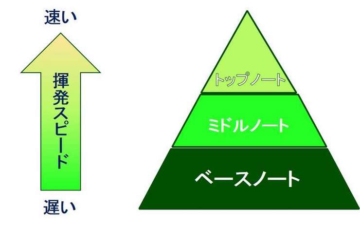 そしてそれらの精油には揮発する(空気中に拡散する)スピードの違いから3つの「香りのノート」に分けられます。