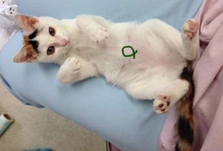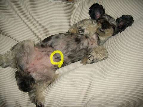 (おへそには、被毛が生えていなかったり、つむじのようになっていたりすることがあります。)