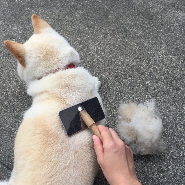 柴犬などの短毛で密集している被毛をもった犬の場合、下毛の塊がボソッと浮いていることがあります。そのような時は指でつまんで取り除きましょう。