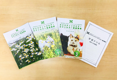 | 教材 | ・ホリスティックケア・カウンセラー養成講座教材一式 ・シニアペット 介護&ケアコース教材一式 テキスト(教本)、学習ドリル |