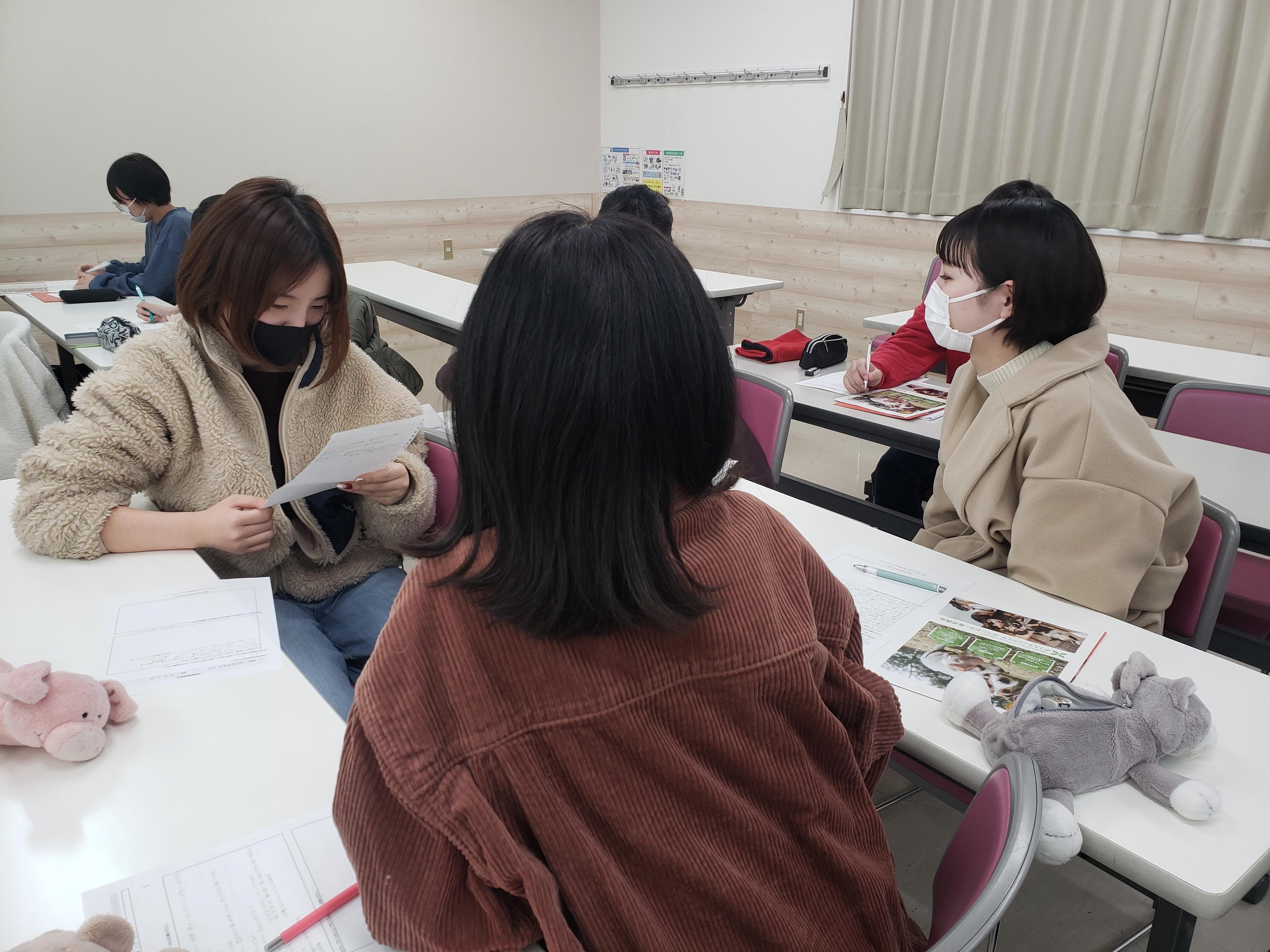 学生さんには講義の内容を踏まえて、「動物にやさしいとはどういうことか?」について意見交換をしていただきました。