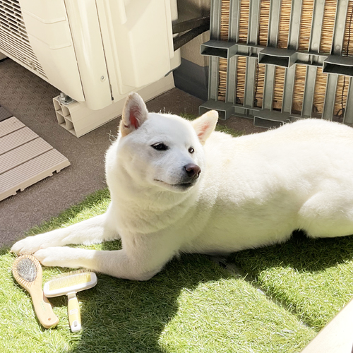 愛犬とコミュニケーションを取りながら皮膚や被毛の状態を確認して異常がないか意識しました。抜け毛も沢山あったので念入りにブラッシングしました。