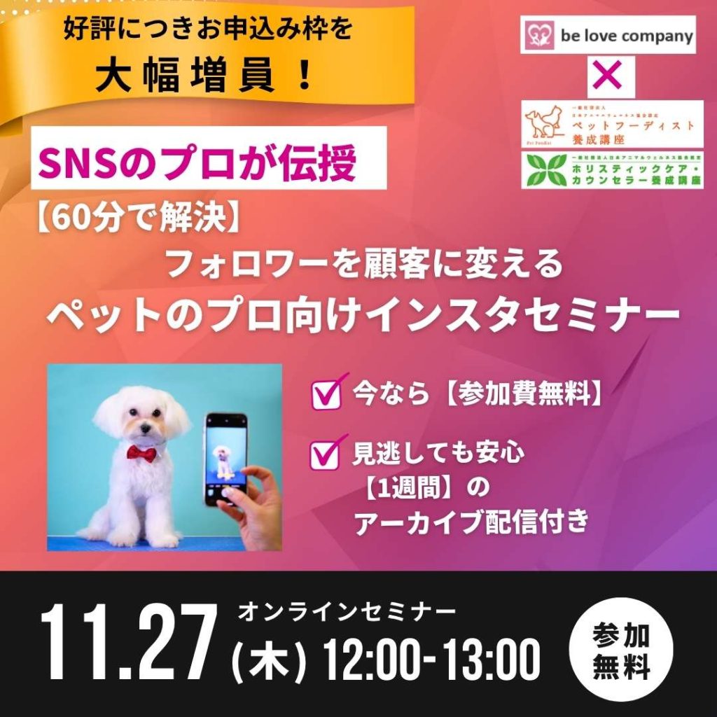 【参加無料】60分で解決★ペットのプロ向けインスタセミナー