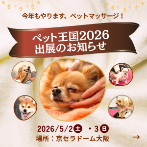 【5/2-5/3 大阪】ペット王国2026でマッサージイベント開催します!
