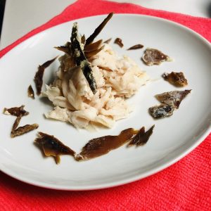 採れたてのみずみずしい高原野菜をみつけたので、こちらも採れたての畑の大根と合わせ、鰹の和えものをつくりました。愛犬にはできるだけ「生」の野菜を食べさせたいので、消化が良いように細かくしました。鰹のうまみをいかす香ばしいごまの風味が、とても美味しい和えものです。