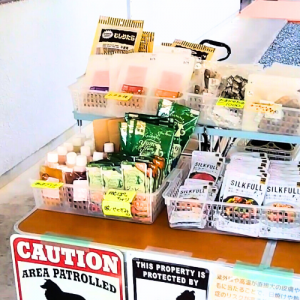 店頭販売時には飼い主様向けお悩み相談対応も実施しています。おやつ購入のついでに小さなお悩み相談をしていただきやすいよう、サプリメントやケア用品は目につくところに展示し、お話のきっかけが生まれやすいようにしています。